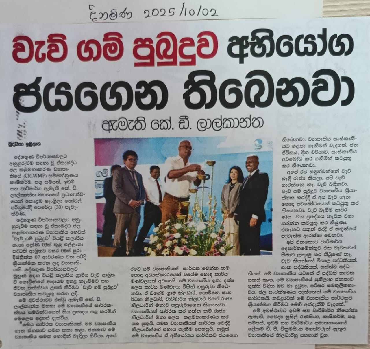 දේශගුණ විපර්යාසවලට අනුහුරු වීම සඳහා වූ ඒකාබද්ධ ජල කළමනාකරණ ව්යාපෘතියේ (CRIWMP) සම්මන්ත්රණය