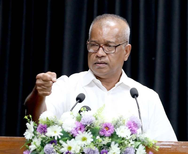 "එළඹෙන වසර සතුටින් අරඹන්න ඔබට අවස්ථාව උදා වෙනවා රජයේ පත්වීමක් අද ලැබුණු නිසා. රජය කියන ආයතනයට තමයි ඔබ මේ ස්ථීර පත්වීම ලබන්නේ. තවත් පැත්තකින් ඉන්නවා ජනතාව. රජය, ආණ්ඩුව, ජනතාව කියන්නේ කොටස් තුනක්. ආණ්ඩුව සහ රජය ජනතාවට සේවය කළ යුතුයි. මේ දවස්වල ඇතැම් මාධ්ය මතයක් ගොඩ නගන්න උත්සාහ කරනවා, ඉස්සර නම් පගාව දීලා වැඩක් කරගන්න තිබුණා. දැන් පගාව දෙන්නත් බැහැ. වැඩක් කරගන්නත් බැහැ කියලා. එතනින් කියන්න උත්සාහ කරන්නේ රාජ්ය සේවයෙන් වැඩක් ගන්න නම් පගාව දිය යුතුයි කියන එක. රාජ්ය සේවය වගකීමෙන් සහ වේගයෙන් වැඩ කරන බවට මේ ගතවන කාලය තරම් සමාජය තුළ අදහසක් හදපු කාලයක් තවත් නැහැ. සුළි කුණාටුවත් එක්ක ඇළහැර අමුණ විනාශ වුණා. අක්කර ලක්ෂයක් විතර මේ එන මාස් කන්නයේ වගා කරන්න බැහැ මේ අමුණ හදන්නේ නැත්නම්. මාස් කන්නයේ වගා කිරීමට ඇළහැරෙන් මේ අපි කතා කරන මොහොත වෙනකොට වතුර ගලාගෙන යනවා. වැලි කොට්ට ගහලා තාවකාලිකව වතුර දෙන්න පුළුවන් තරමට හදලා තියෙනවා. ස්ථීරව හදා ගන්න ටිකක් කල් යයි. කවුද මේක මෙච්චර ඉක්මනින් කළේ? මේක කළේ රජය. රජය කාර්යක්ෂම නැත්නම් වාරිමාර්ග දෙපාර්තමේන්තුව විසින් ඇළහැර වතුර දෙන මට්ටමට සකස් කළේ කොහොමද? රජය, ආණ්ඩුව, ජනතාව එකතු වෙලා ජාතික ඉලක්කයක් සපුර ගන්න වැඩ කරලා තියෙනවා.